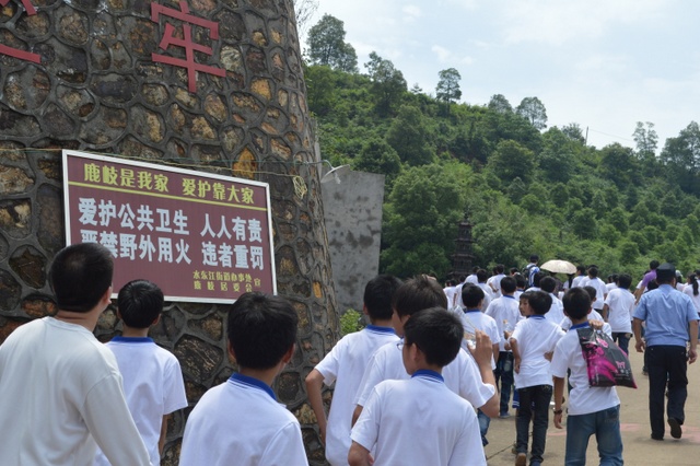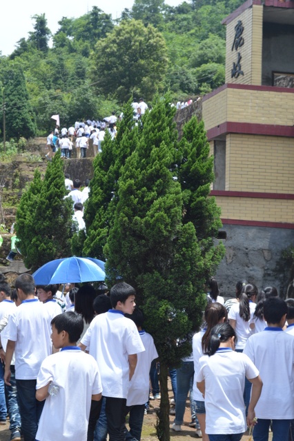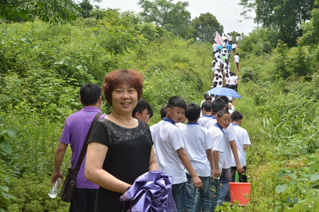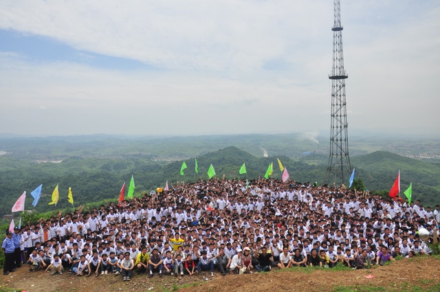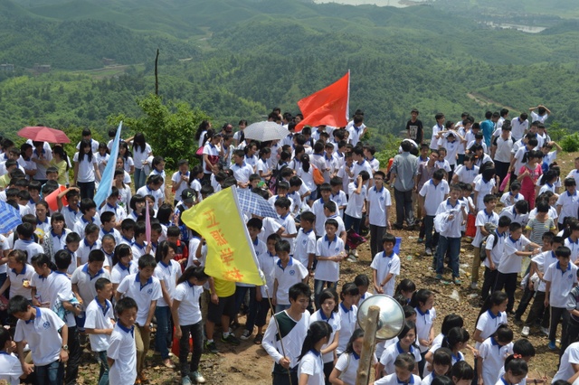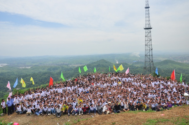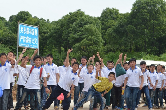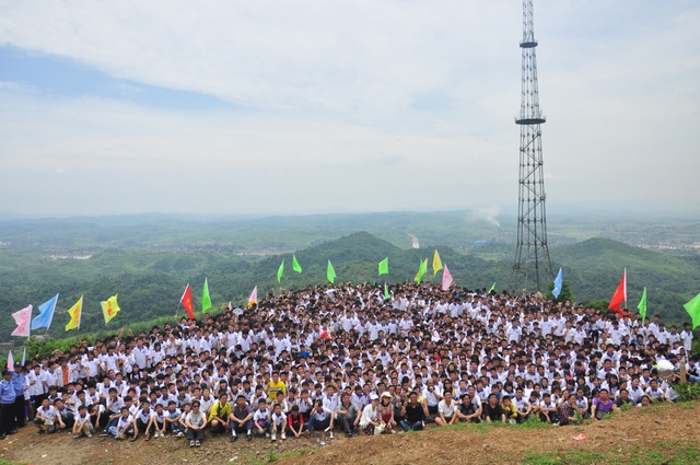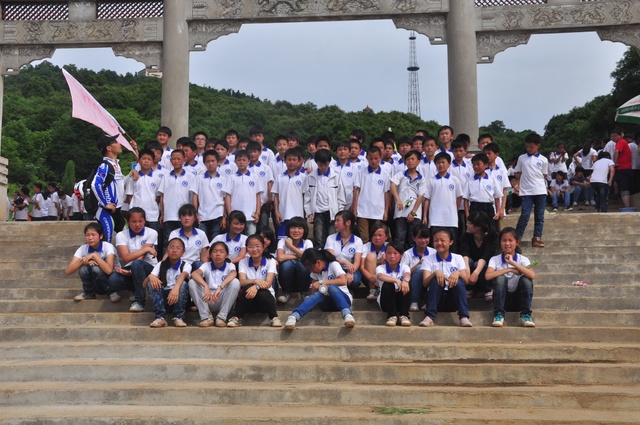 一路上,同学们精神饱满,队伍整齐。经过近两个半小时步行,全体学生无一人掉队,全部到达目的地鹿岐峰。到达山顶后,1800多名师生拍下了耒阳最大的合影照。