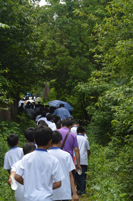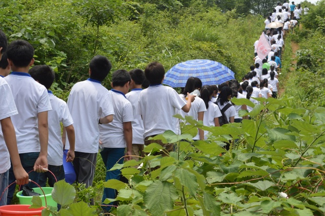 下午3:30开始返回。在返程的路上,大家体力明显有些不支,有的同学双脚磨起了血泡,但仍然坚持前进,有的同学帮别人背包、提水桶也毫无怨言;有的同学让学生搀着,咬紧牙关坚持不懈;有的同学家长开车来接,再叫也不上车;有的同学眼里一瘸一拐眼噙泪水仍艰难前行,顺利到达学校。