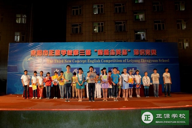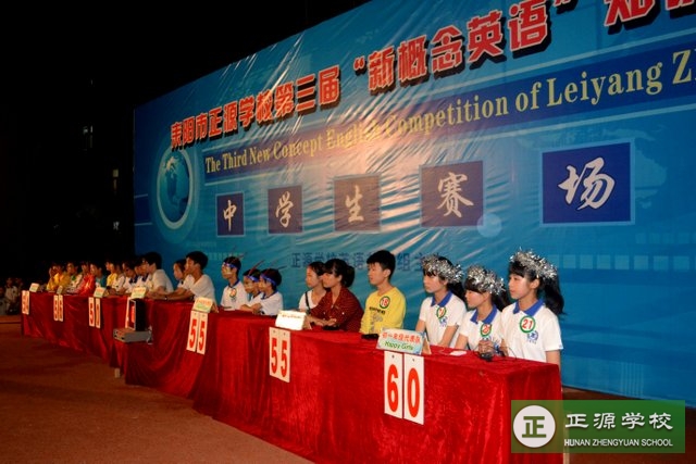 2013年5月16日晚上,正源学校第三届"新概念英语"知识竞赛在一浪又一浪的拉歌热潮中拉开了序幕。来自初一年级的两支代表队(Clever Boys、Happy Girls)、初二年级的两支代表队(Sunny Team、Shiny Team)、初三年级代表队(Top Team)、准高一年级的两支代表队(Wisdom Typhoon、Youth Style),共七支代表队在近三个小时的比赛中展开了激烈的比拼。整场比赛分为七个部分:团体展示、即兴演讲、英文背诵、风险题、同声翻译、快乐传真和表演题。比赛内容丰富多彩、形式多样。比赛现场秩序井然、激情飞扬。经过七轮的角逐,来自初二年级的Sunny Team以303分的总成绩夺得第一名。
