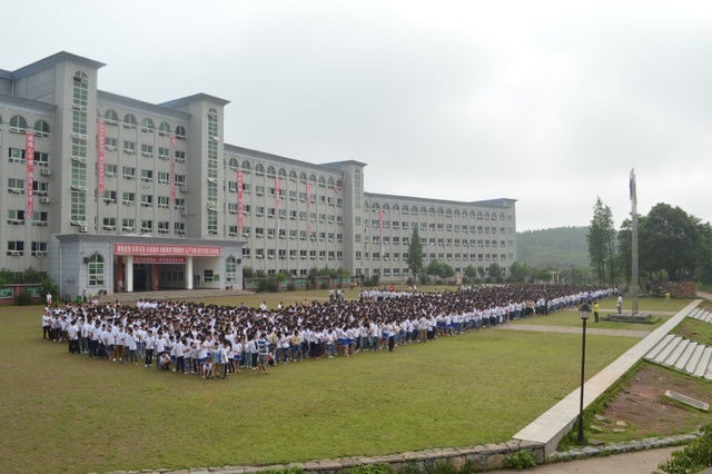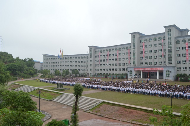 初中部3600多名学生生在学校广场举行升国旗仪式