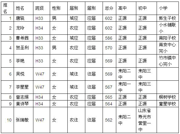 今年的文科应届生也有不俗表现:耒阳市文科600分以上共3人我校就占了2人,他们是高33班唐骁和高34班龙玲,他们以602分并列耒阳市第二名。