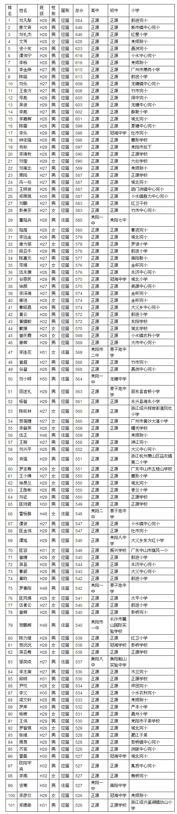 从全省及衡阳市的高考分数排名来看,除刘凡犁外,廖文奇648分位居全省第67名、衡阳市第3名。刘礼杰646分位居全省第85名、衡阳市第4名,令人羡艳。