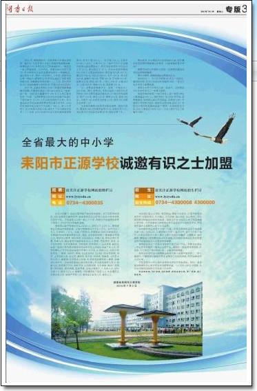 湖南日报:耒阳市正源学校诚邀有识之士加盟