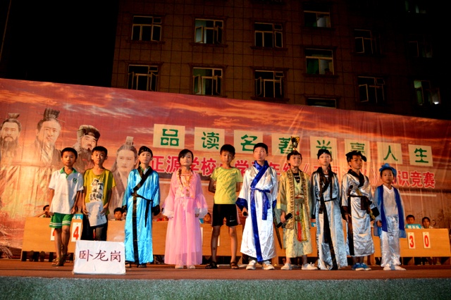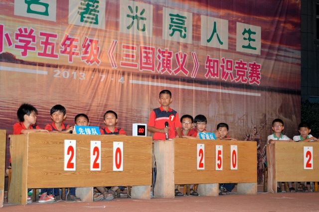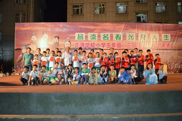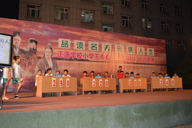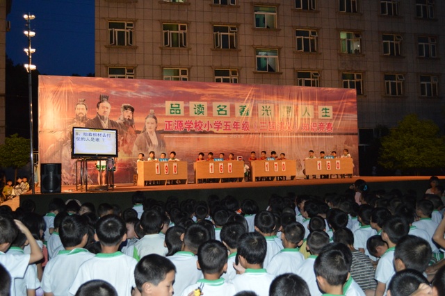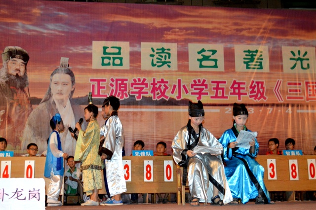 “语文抓阅读,数学搞竞赛”是正源学校创新教育的特色之一。2001年以来,小学部在四、五年级阶段,特别开设了《水浒传》、《三国演义》等古典名著阅读课。7月4日晚7点,在小学部运动场举行了“品读名著、光亮人生”《三国演义》知识竞赛。此次竞赛,为了检验这届学生阅读成果,同时也是对教师教学情况的检阅。