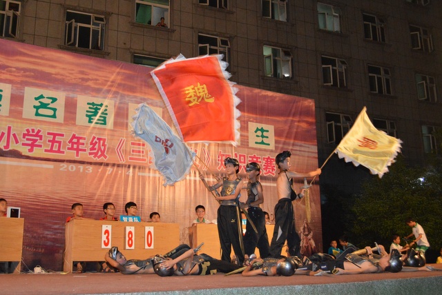 罗湘云校长和正在学校作客的中国人民大学法学系教授应邀到场指导。小学部刘德主任、贺江云副主任以及五年级主任阳明权与相关班主任等和一至五年级300多学生参加了这次活动。活动由五年级学生自己主持。各学生参赛队来自五年级16个班级,分为无敌代表队、精英代表队、先锋代表队、智囊代表队,每队4人。竞赛围绕《三国演义》知识,分为“初露锋芒”必答题、“谁与争锋”抢答题、“舍我其谁”风险题、“心有灵犀”互动题四个主题,赛场上还精心安排了四个与《三国演义》相关的节目,即舞蹈“历史的天空”“曹操”,情景剧“三顾茅庐”,相声“新批三国”。竞赛激烈,表演精彩,赢得了到场3000多位观众的阵阵掌声。