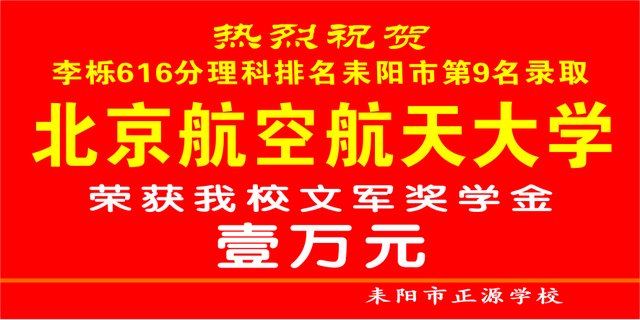 李 栎 616分耒阳市理科第9名 北京航空航天大学1万元