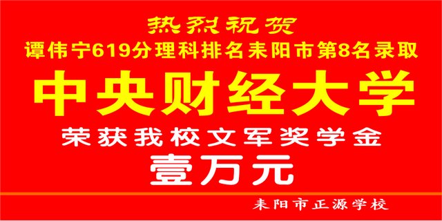 谭伟宁 619分耒阳市理科第8名 中央财经大学1万元