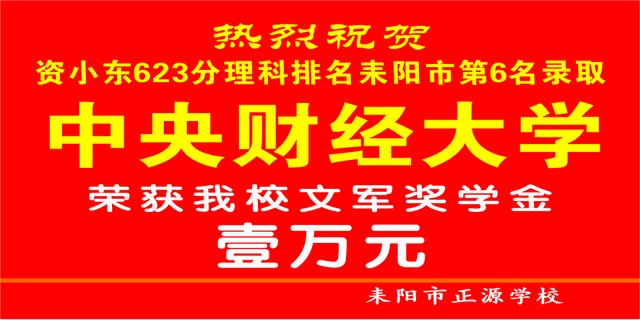 资小东 623分耒阳市理科第6名 中央财经大学1万元