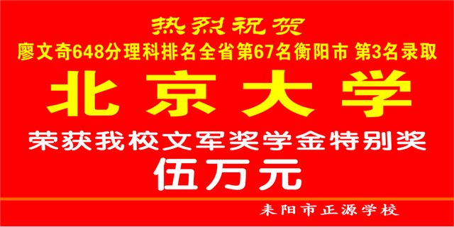 廖文奇648分理科排名全省第67名、衡阳市第3名录取北京大学获得正源学校奖学金5万元!