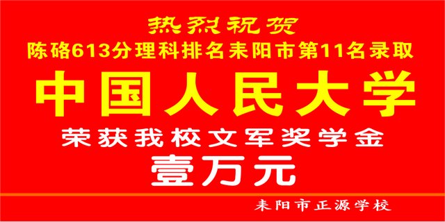 陈 硌 613分耒阳市理科第11名 中国人民大学1万元