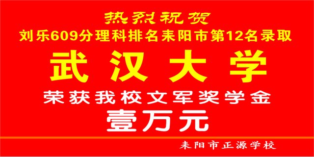 刘 乐 609分耒阳市理科第12名 武汉大学1万元