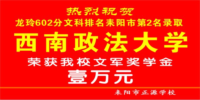 龙 玲 602分耒阳市文科第2名 西南政法大学1万元