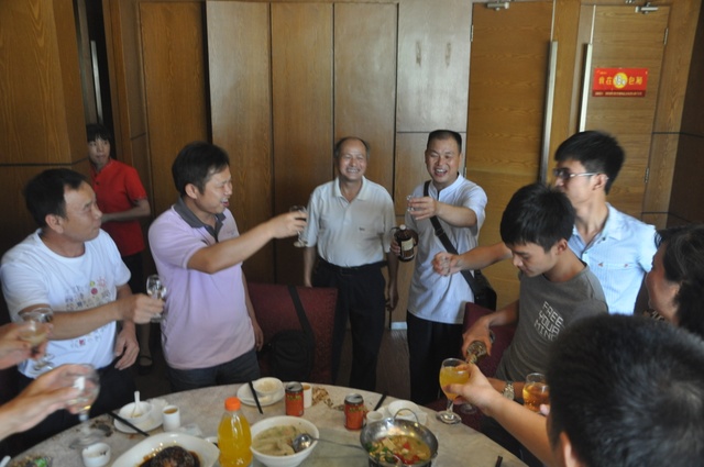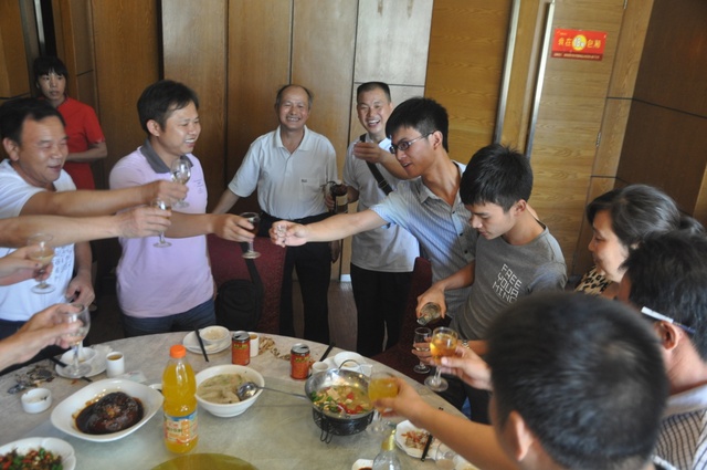 2013年8月7日,资小东家人在龙凤酒家摆席设宴,感谢老师和亲友的培育与关爱。当日中午,罗校长率领高三老师和有关负责人前往祝贺并授奖牌。