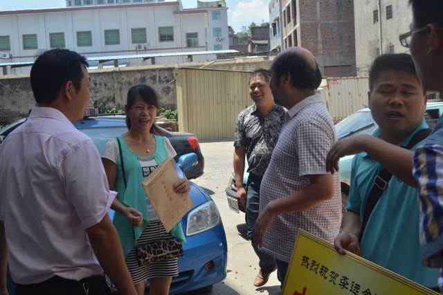 2013年8月10日,罗校长率领学校老师来到李远金居住的灶市西湖亭,为其颁奖并合影留念。