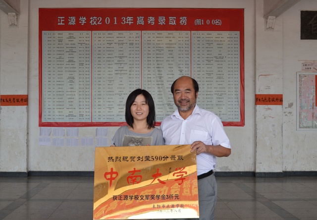 罗校长率正源老师为考入中南大学的刘莹颁奖