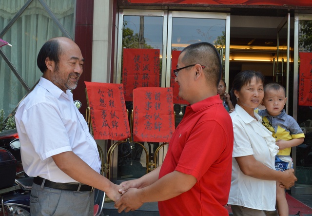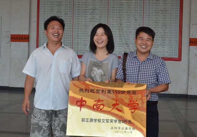 2013年8月16日,罗校长率正源学校老师参加刘莹同学的谢师宴,宴前,罗校长一行与刘莹及其家人在酒店前面合影留念。刘莹同学是从六处子校小学毕业后考入正源读初中和高中,先在奥赛班,后入科技班29班(该班53人全部上线,其中39人上一本14人上二本),在正源2+4模式下,努力学习,不断进步。今年高考590分,被中南大学麻醉学专业录取。