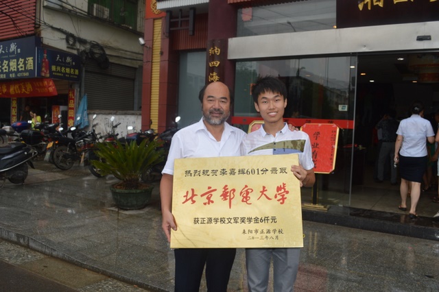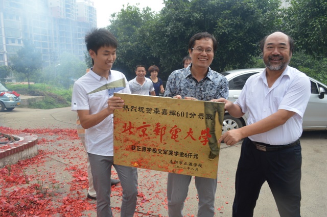 李嘉辉以601分的高分被北京邮电大学录取。学校罗湘云校长、梁晓芬董事和学校管理人员、老师李丰、徐文森、王小灿等人,来到耒阳市西湖路李嘉辉家中,为李嘉辉送去祝贺奖牌。李嘉辉的父亲李康活老师热情接待了正源一行,并对正源的培育之情表示了衷心的感谢。李康活老师一家在耒阳“湘西部落”酒家设宴感谢前去祝贺的学校领导、老师。