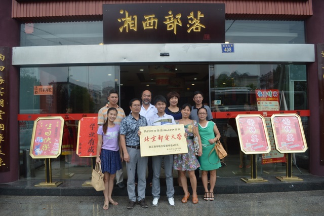 8月22日,罗湘云校长、梁晓芬董事率领学校部分老师来到李嘉辉同学家中,为李嘉辉考入北京邮电大学送去学校的祝贺。