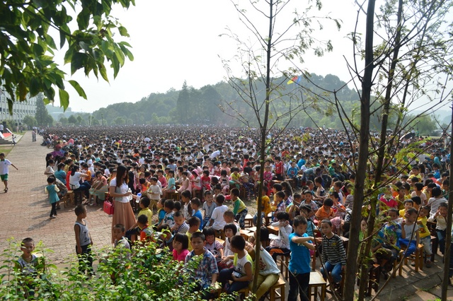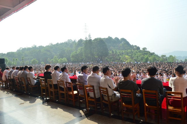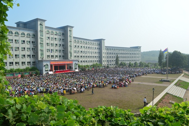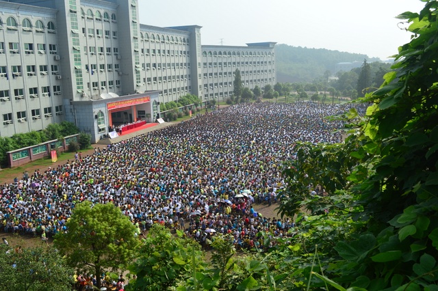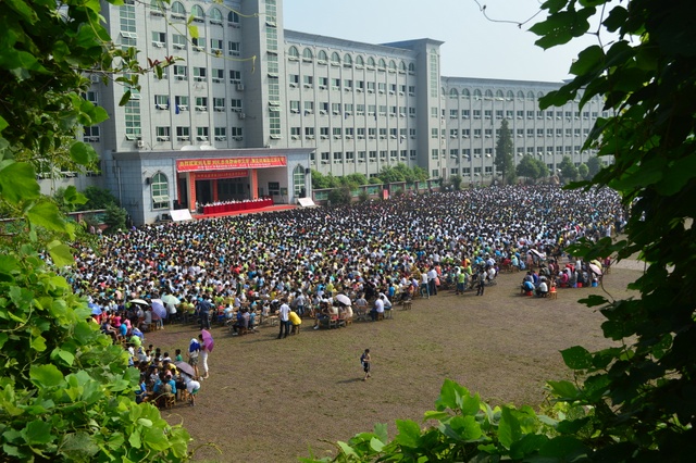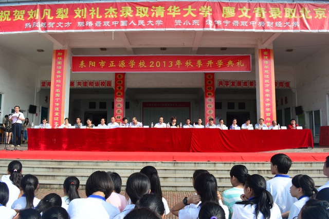 2013年9月9日,阳光明媚,我校600多名教师和12826名学生在学校教学楼前坪,隆重举行了秋季开学典礼。主席台下小到活泼好动的学前班学生,大到意气风发的高三学生,12826名学生排着整齐的队列坐在一起。万人齐聚的场面宏大而充满朝气。典礼贯穿着“敢打敢拼,敢为人先;团结奋进,创造奇迹”的主旋律。