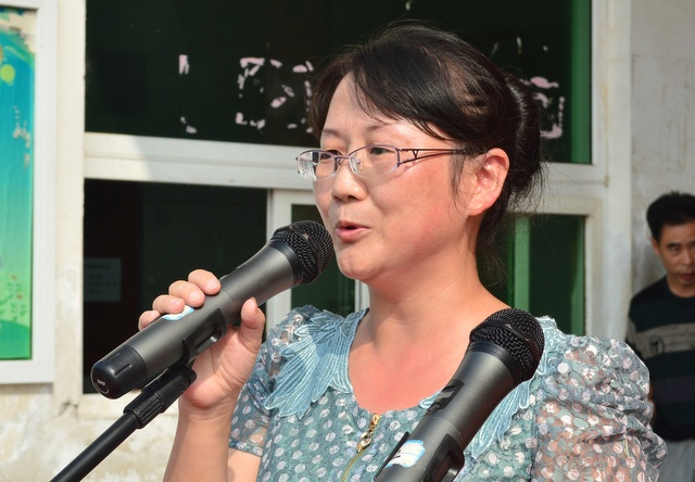 老教师代表小学部邓晓丽老师发言。台上台下,师生激情洋溢。