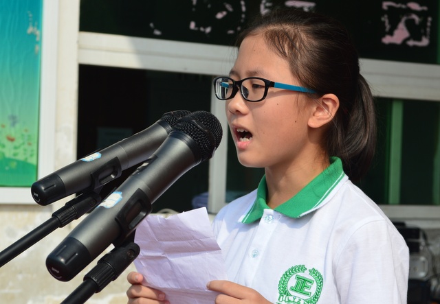初中生代表段佩瑶发言。