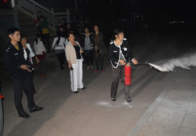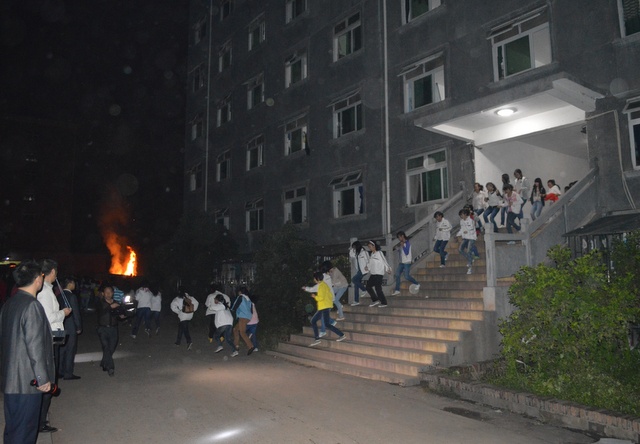 晚上阴天,没有月亮、星星,女生宿舍楼的一块空地上燃起一堆大火。7点整,警报长鸣,2652名学生按照防火灾紧急逃生疏散演练方案的要求,从宿舍楼三个出口跑出。三个出口的学生几乎同时跑完,用时6分30秒。副总指挥、宿管部副主任谭小云说,本次防火灾紧急逃生疏散演练方案根据女生宿舍楼的具体情况调整了三次。