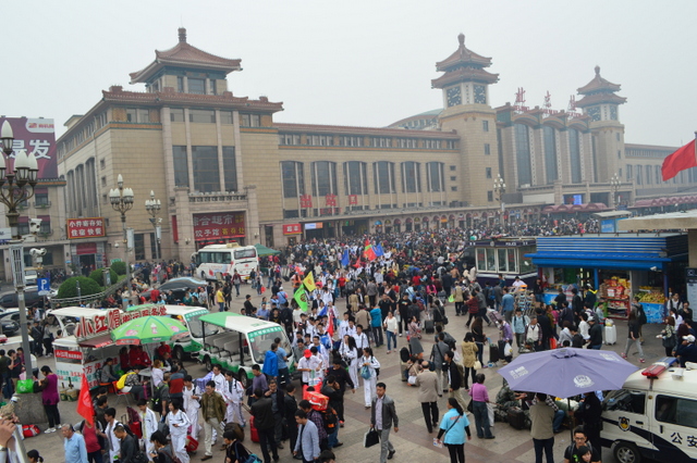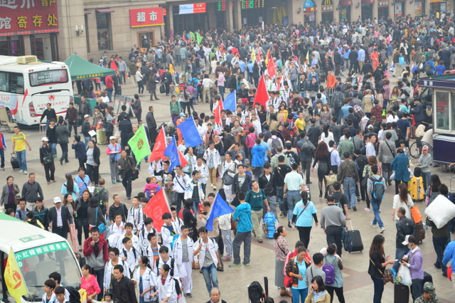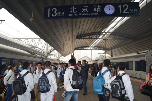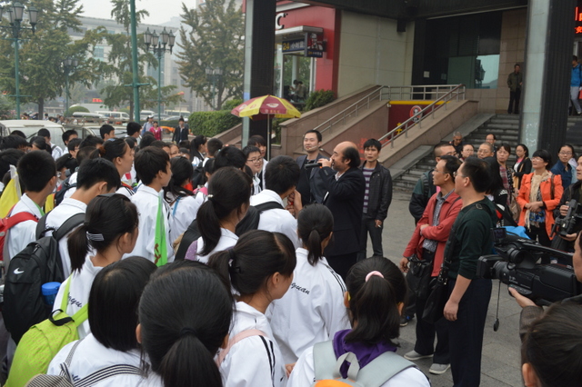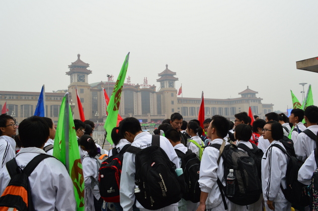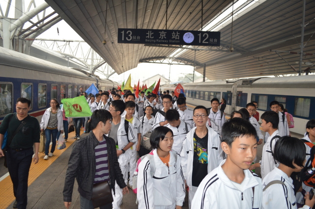 14点20分,北京站前,正源学生们欢呼:“北京,我们来了!”