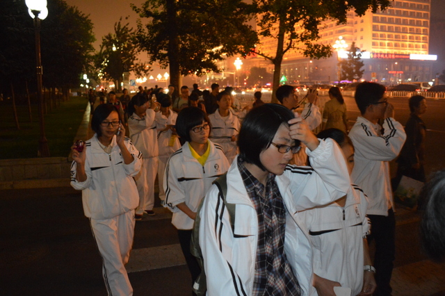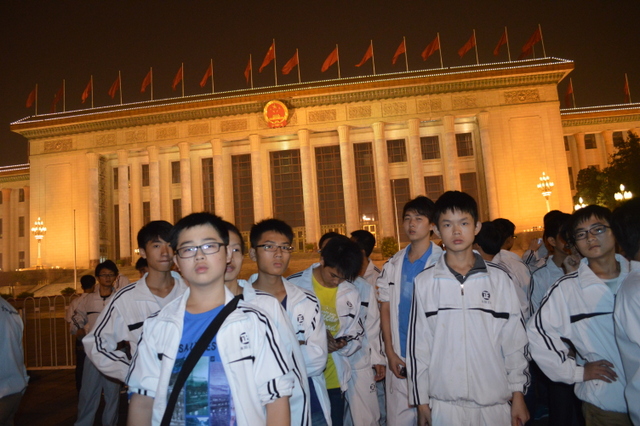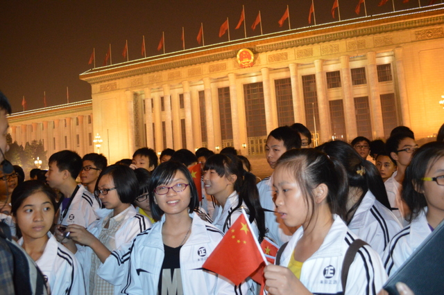 9月29日北京的晚上,光线比白天多了灯光的五彩,多了繁华的缤纷。正源学子白色的校服,在人流如织的王府井大街,在庄严的天安门前,在肃穆的人民大会堂前,是那么醒目。他们穿行在北京的大街小巷,笑着走着。