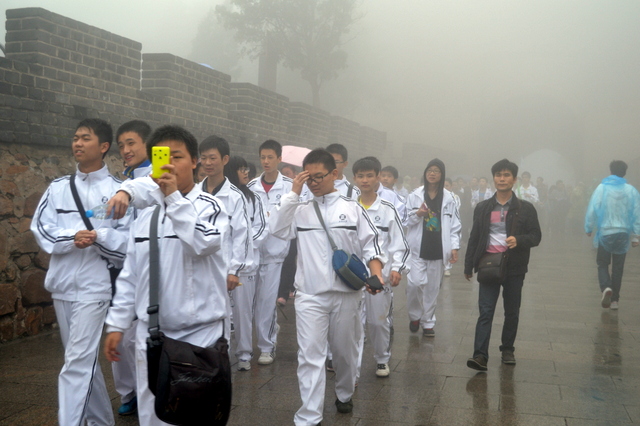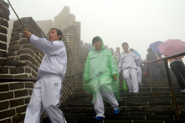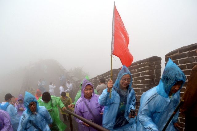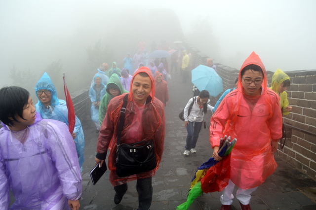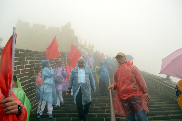 烟雨中,长城隐没了雄伟的身姿。然古城古墙古砖古石板,长城雄伟气势依然。一百米以上熙熙攘攘的声音就在头顶,不同国家的语言、不同地区的方言嘈杂可闻,却是迷濛不知人面目。陡峭的城墙上,风吹动雨雾直扑在人身上,凌厉,骄傲,深沉,仿佛来自历史的深处。游人每一次的登临,都是对历史的一次唤醒。