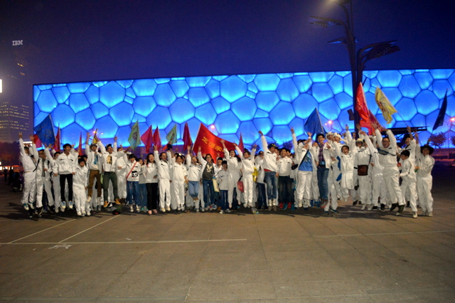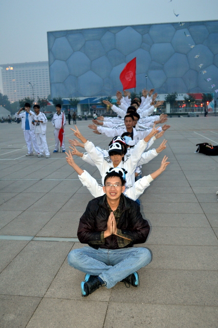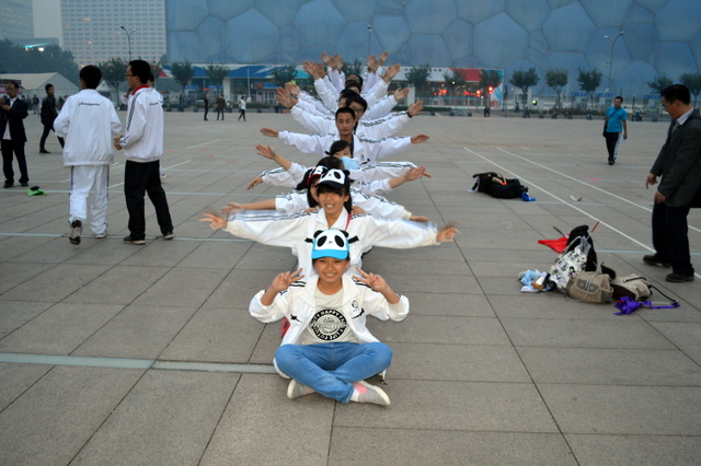 17点在北京鸟巢和水立方之间,正源北京游学子集合。一切平安,而且学子们有了另一种游览的体验。他们和外国人用英语交流着,慢慢吃不消了?不要紧,还有老师呢。玩千手观音,玩个个人造型,玩的,就是一个快乐,就是一个率性。