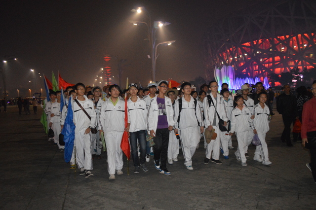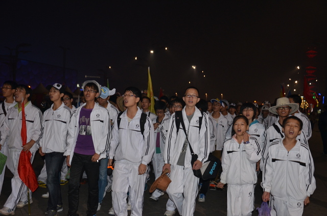 15点30分,北京西直门地铁口,正源北京游学子集中。校领导宣布:下午行程是到鸟巢、水立方、奥林匹克公园参观;是鹰终得自己学会飞翔,在北京已经坐了两天的地铁,学生自己坐地铁等交通工具抵达目的地,班主任不允许跟学生一起走;17点在鸟巢和水立方之间集合。宣布之后,学生成群结队陆续离开。有十来位学子手拿地铁线路图仔细向老师询问,最后离开。