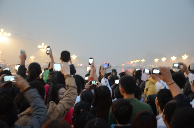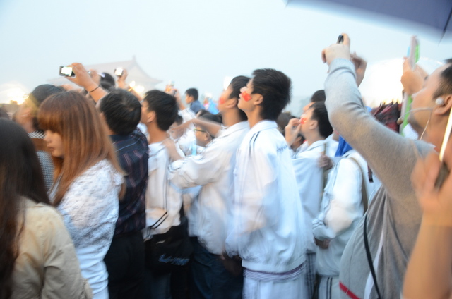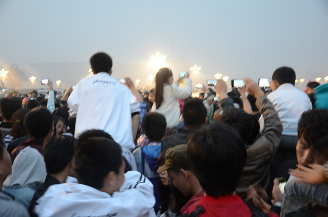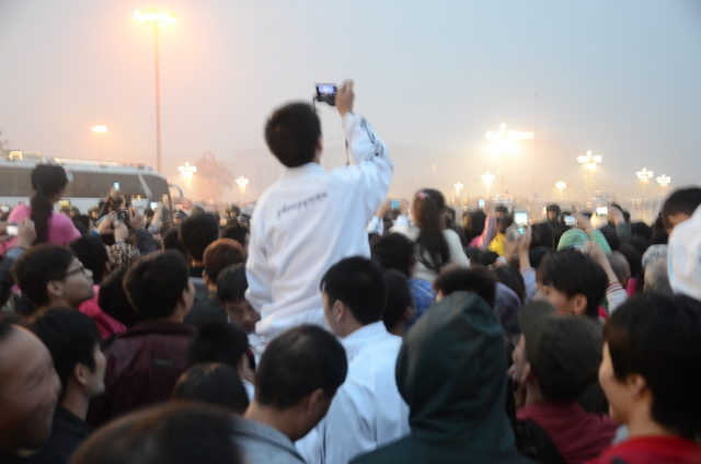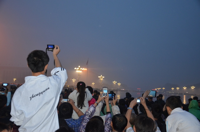 今天5点45分,正源北京游一行在天安门前集队。天安门上前人头攒动,天空飘着零星小雨。虽是人山人海,但并没有人 大声喧闹,前面绝大部分的人自觉把雨伞收起。武警挺拔的身姿,静静站立着,天安门前气氛庄严。6点10分,国旗在国歌声中冉冉升起,国旗在天安门前的华灯中格外鲜艳。国歌声后,和平鸽在天安门广场盘旋,场面壮观。