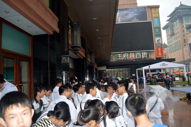 在天安门观看升旗仪式后,学校领导要求学生9点整在王府井大街东安广场集合,之后宣布解散。正源北京游145名学生在人山人海中渐渐分散,消失在人潮中。老师们在北京的大街上、景点边,偶能看到三三两两身着白色校服的正源学子在游玩、拍照。9点整,王府井大街东安广场前,班主任清点学生人数,学生全部到齐,平安。原拟定9点开始列队步行到故宫参观,但由于雨下得较大,临时调整计划,学生在领了津贴后自由活动,要求12点在住宿的酒店集合。