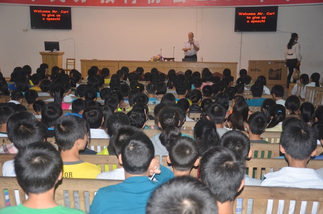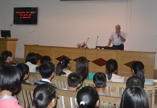 10月9日16点30分,学校报告厅已经坐满了学生,卡尔·施密特先生开始为学生授课。卡尔·施密特先生1991年起在衡阳师院工作了十几年,弟子遍布中国及世界各地。他为人和蔼、友善,在中国各地结识了很多朋友。退休后,他致力于资助中国各地的中小学学生及大学生完成学业,传播大爱。