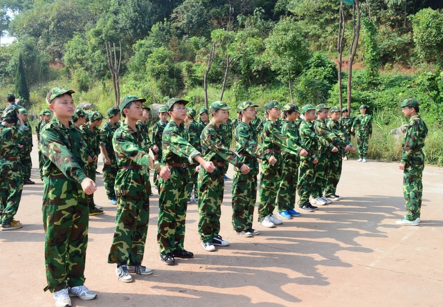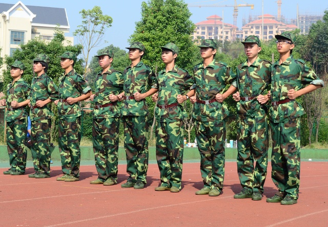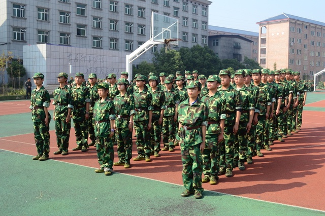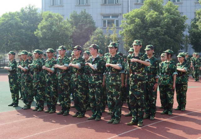 下午5点来到学校塑胶运动场,高一年级的同学们身着迷彩服,正精神饱满地进行着训练着。“左右左”、“一二三四”的口令声响亮有力。H71班的教官正在教同学们练习格斗。“国为我们班今天军训任务完成得很好,教官教大家格斗来进行调节、放松。”班上的同学刘霞说。她和班上的其他几个同学欧阳广飞、罗安宁、贺孟姣都表示,军训中他们获得了克服困难的成就感,班级的凝聚力也更强了。H71班的教官说,班上的同学们认真自觉,领会能力强,有意志力;班主任关心学生,工作认真负责。H71班的班主任夏齐新老师说,教官要求严,有很好的敬业精神。