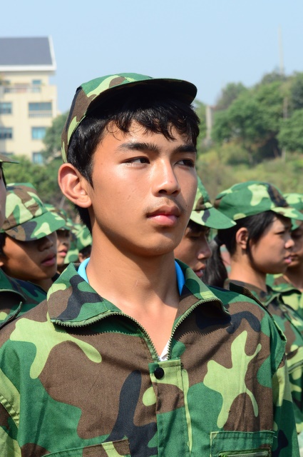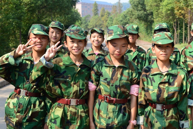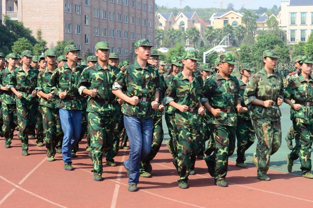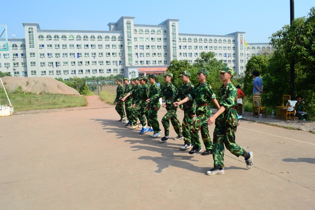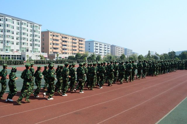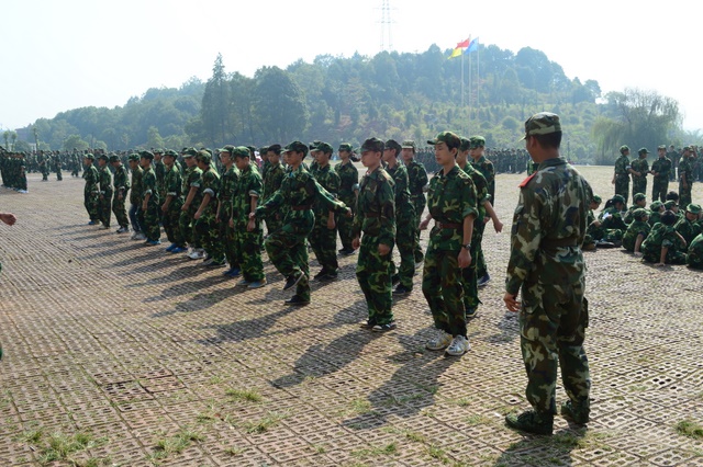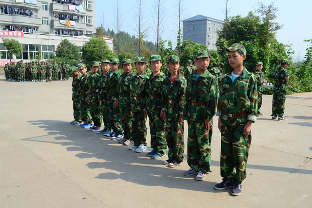 初一年级的同学们在军训的过程中也表现得生龙活虎。他们在教官的教导下,排着队列,喊着口令,一遍遍地练习着。教学楼前广场和后操场,到处都是他们队列行进的身影。有的班级干脆拉到了学校的水泥路上进行训练。
