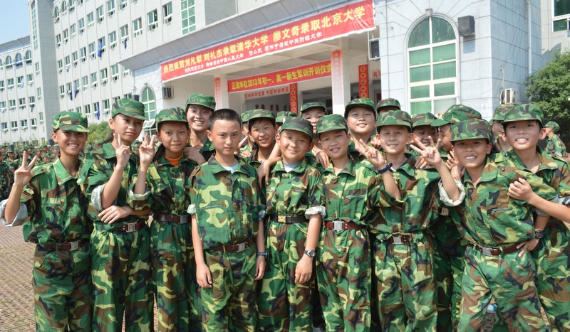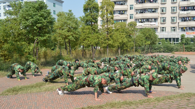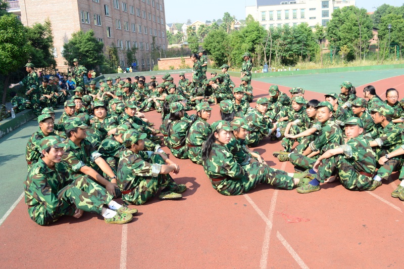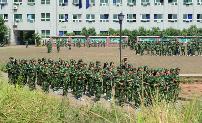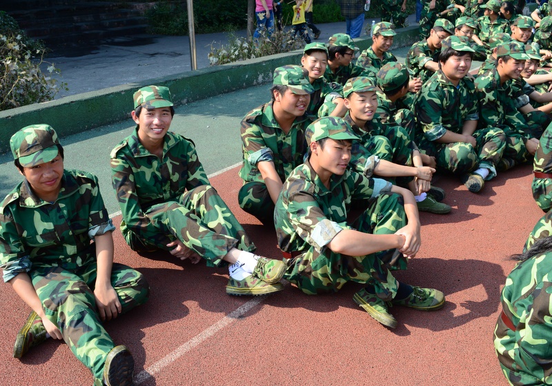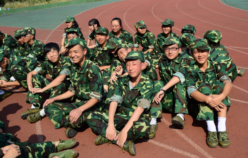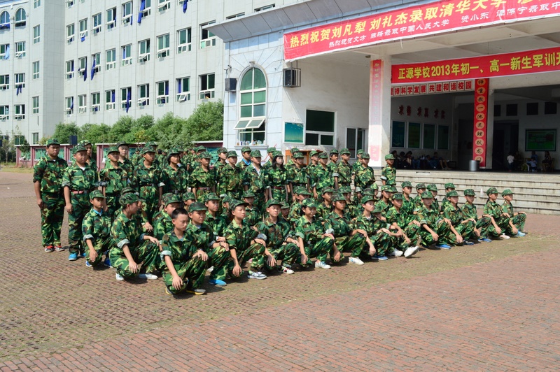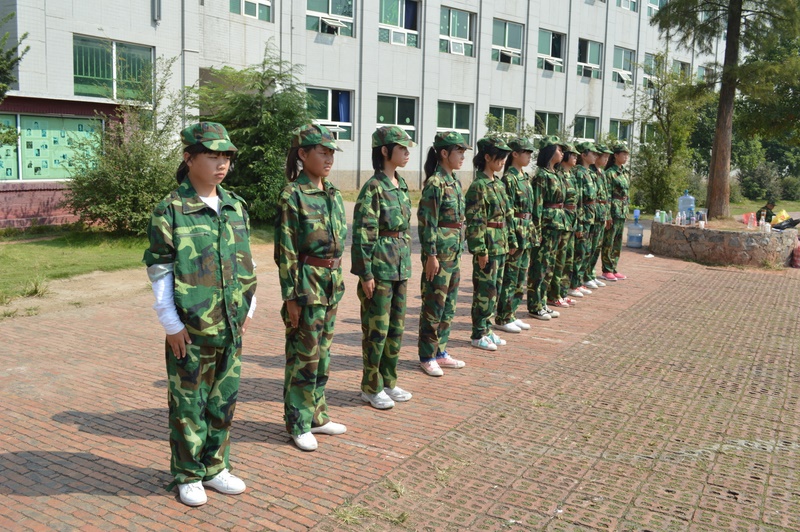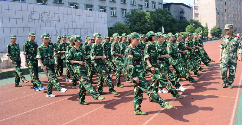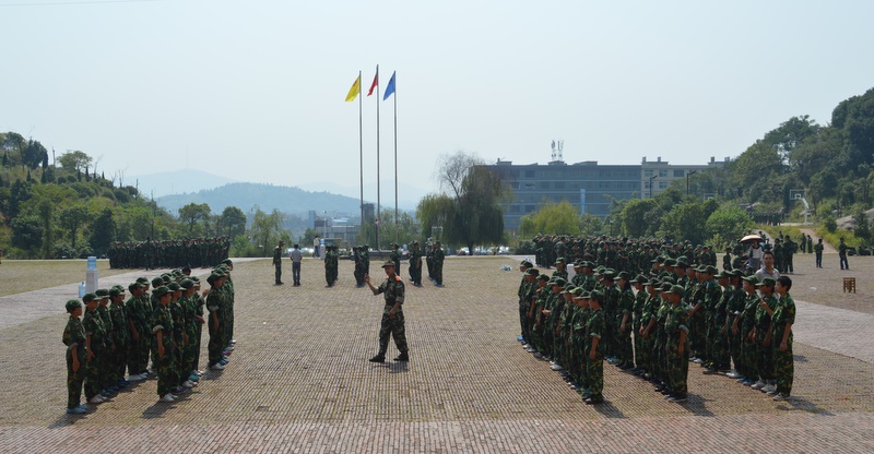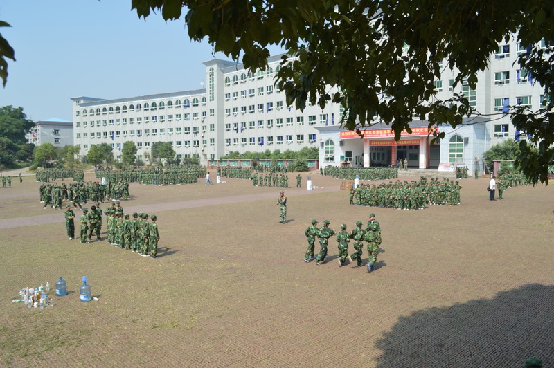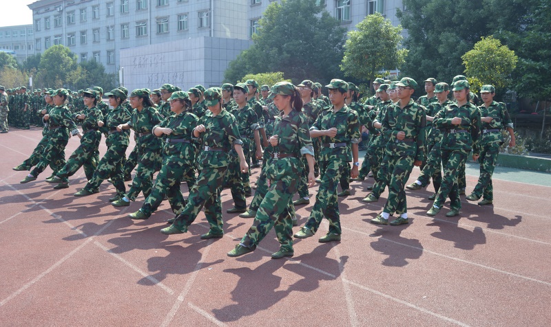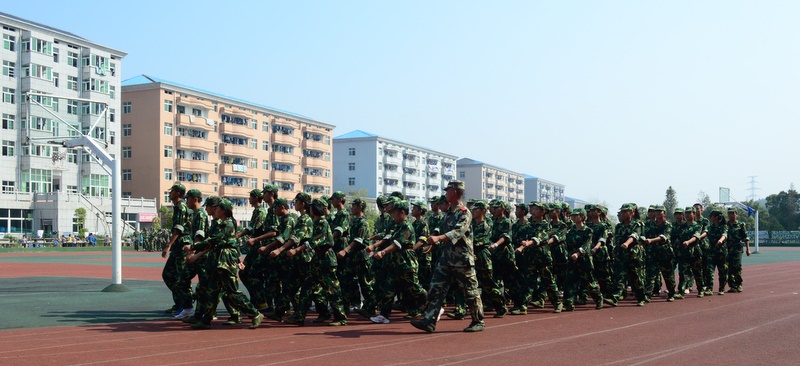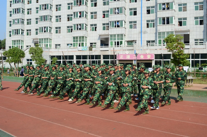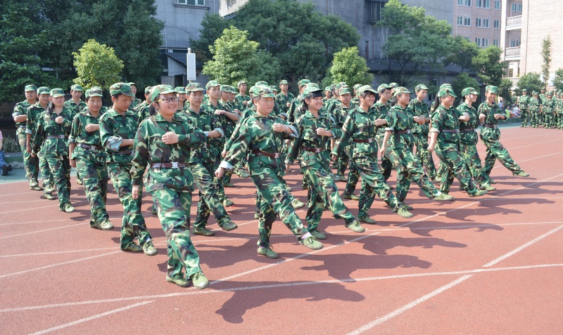 今天天气晴朗,艳阳高照。我校高一年级、初一年级新生军训进入第六天。今天军训的内容是跑步停止间转法、三大步伐。