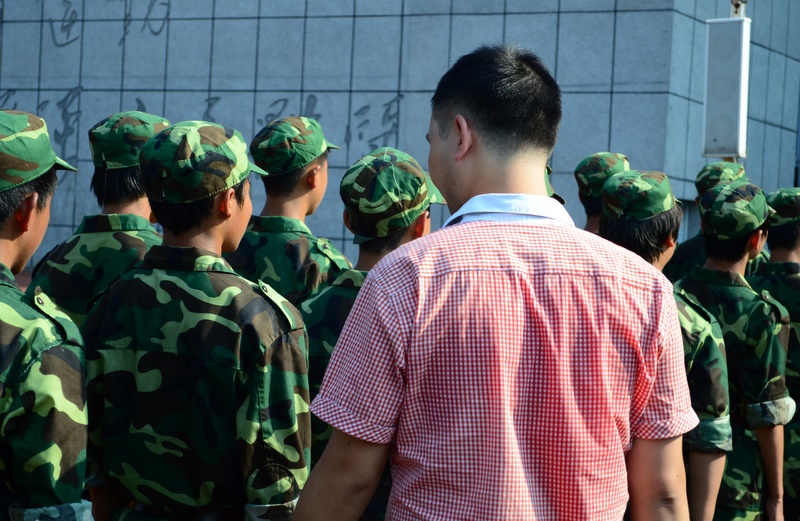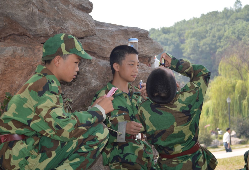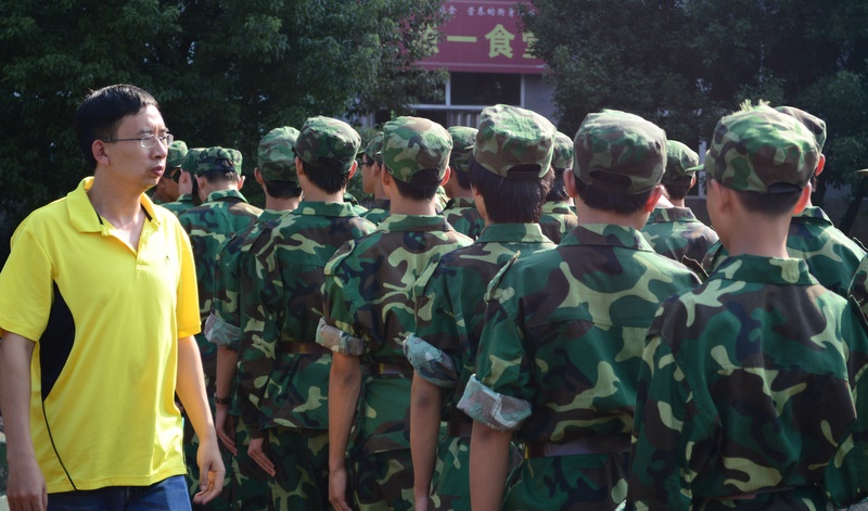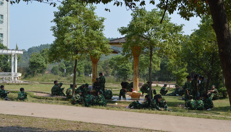 高一年级H70班的班主任肖东飞老师说,今天班上的同学进步很大,纪律性明显有了提高。H70班有2位同学大腿内侧的皮在昨天擦破了,肖老师要他们根据自己的情况自己决定是否休息一段时间。今天这2位同学一直坚持在进行军训。今天是星期天,同学们可以不晨练,但H70班的同学们仍然坚持在晨练时间进行练习。