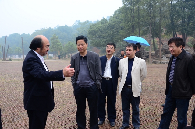 走在教学楼前的广场上,罗校长向客人介绍到,这个广场有7000多平米,参观故宫,浏览网页上的巴黎街道后受到启发,将地面不打水泥,而是像现在这样用镂孔砖铺砌,晴天不起灰,雨天不积水,走路不打滑。尤其是春夏时节,砖孔砖逢间长出小草,绿茵茵,软绵绵,赏心悦目。