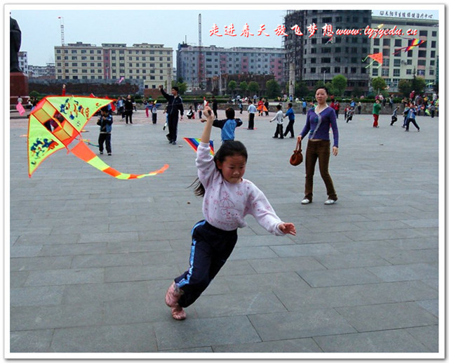 2007年3月23日上午,我校小学部全体师生在发明家广场举行了"走进春天 放飞梦想"的放风筝活动。