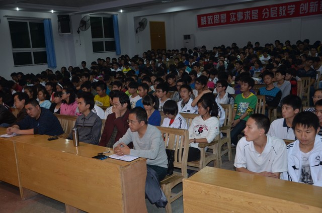 11月7日晚上,我校高二年级在学校报告厅召开全体师生会议。高二年级主任徐文森、学校教研处副主任李康活主持会议并讲话,罗校长、校长助理罗新成出席会议,并对同学们提出了学习、休息等方面的要求。高二年级老师和490余名学生参加了会议。会议气氛严肃而活跃。