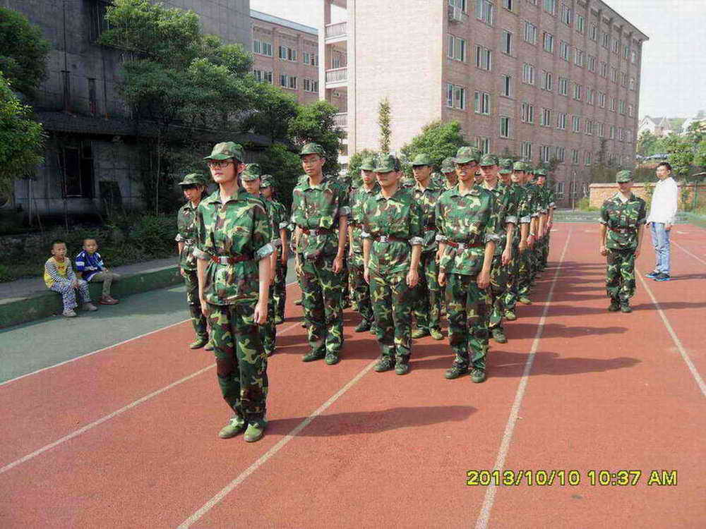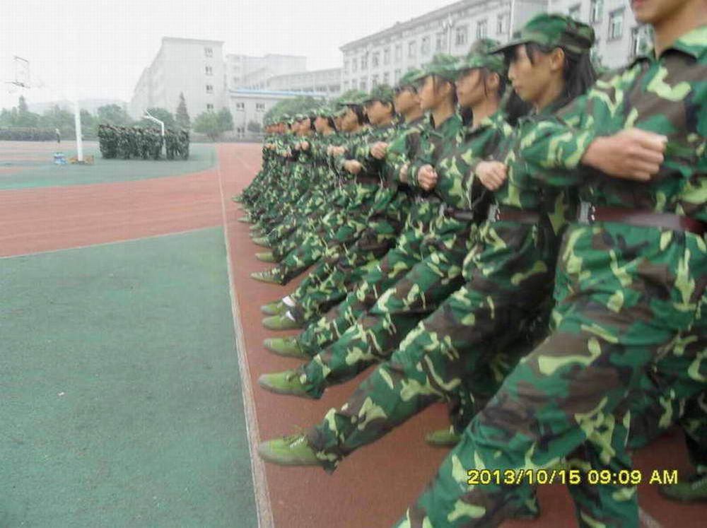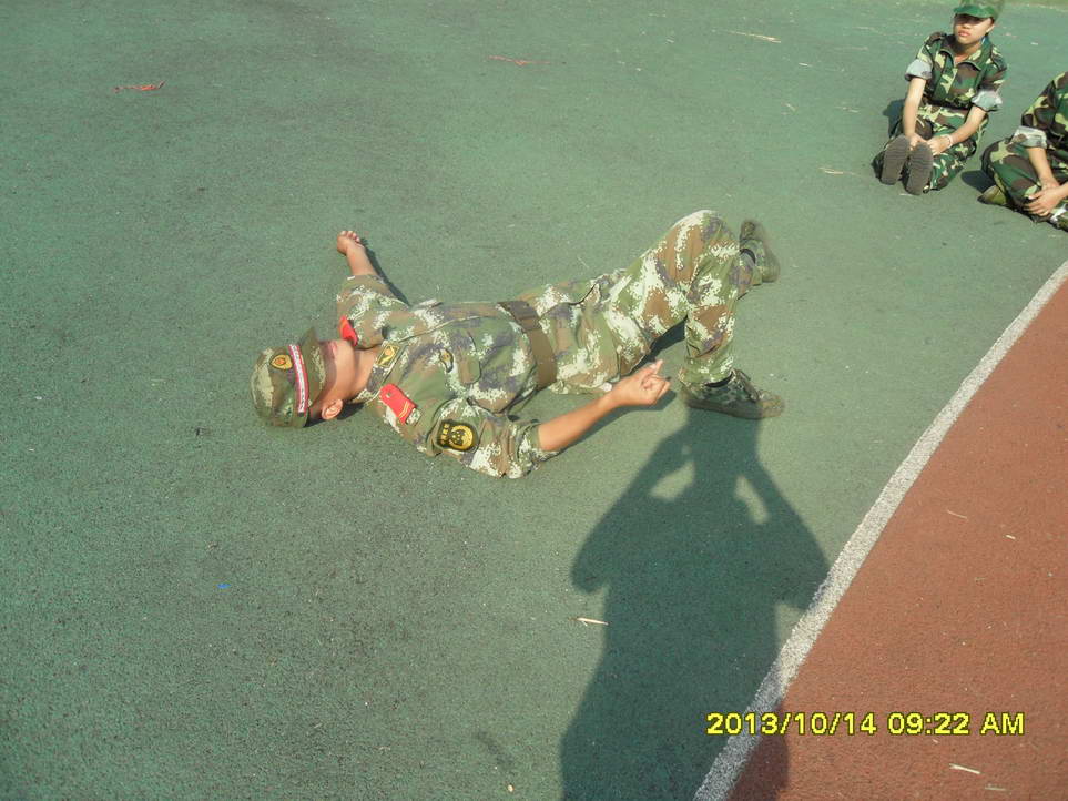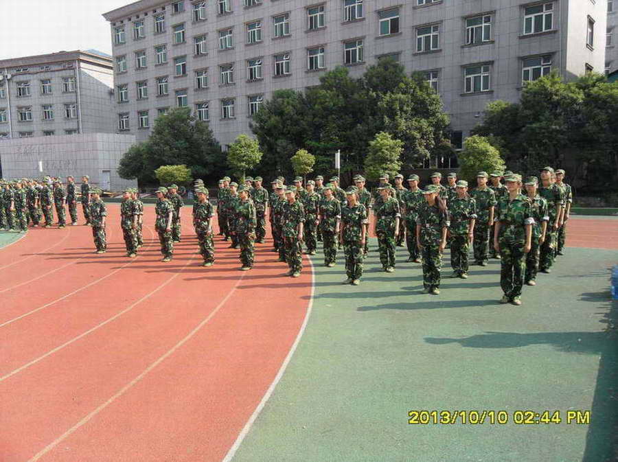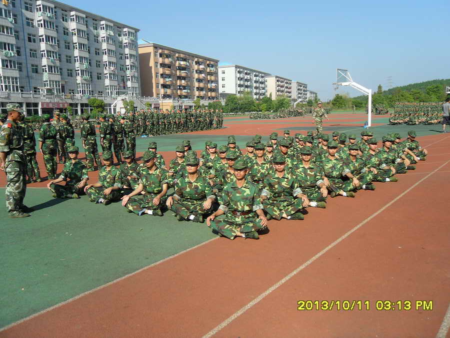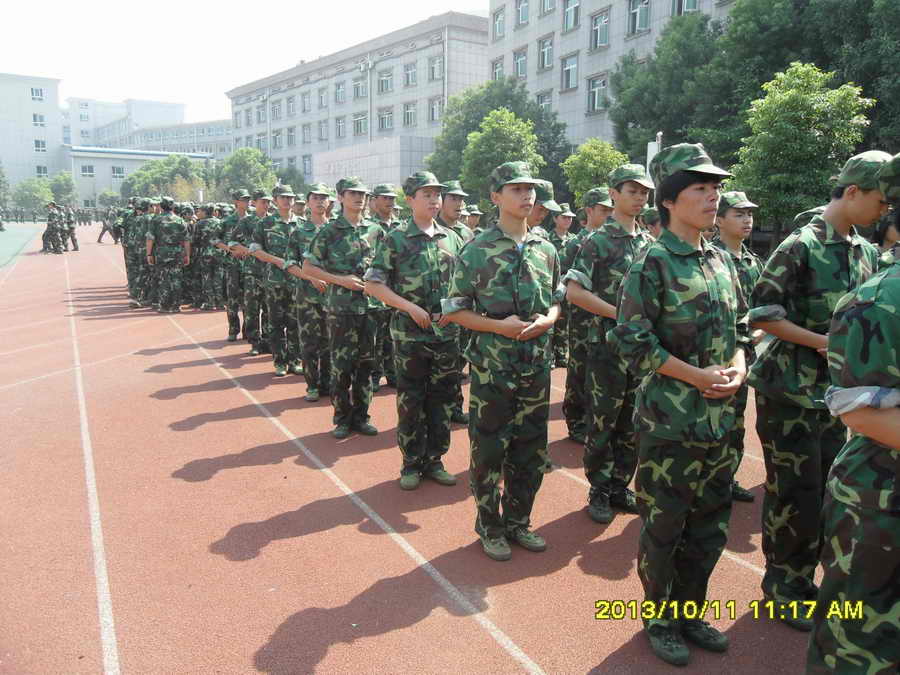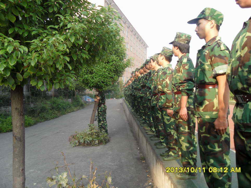 或许是老天待我们“不薄”又或许是早已经过学校精心地计划,原本已开始还在为天气凉爽而暗暗欢喜的我们,立马就遭到了当头一棒——太阳依旧不管不顾地从乌云之中挣脱了出来,迎接我们的虽不是九月那似火的骄阳,但这十月的阳光也并非等闲之辈,尽情地施展着它的淫威。遭到阳光肆虐的皮肤当然逃不过厄运,短短八天里便经历了一次由白到黑的转变。却又正是在这烈日之下,我们一遍一遍声嘶力竭地喊着口号,一次次做着乏味的动作,一回回拖着酸痛的腿迈着沉重的步子回到寝室……在被晒得发烫而发出刺鼻气味的塑胶场上,教官的嗓子虽已沙哑,但背脊依然挺立——那是属于军人的尊严,只为了心中那一抹神圣的橄榄绿……