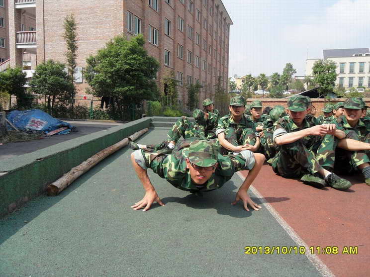 还记得第一天在教室里见到他时,他又腼腆又羞涩,还长着一张娃娃脸,顿时觉得军训肯定枯燥死了。没想到的是,一到了训练场上,他如同脱胎换骨一般,语言幽默,神态诙谐,惹的我们笑声不断——毕竟还是十八九岁的年纪,尽管历经了风霜,但童心是一直有的。正因这样,我们很快就打成了一片,亲密得好像兄弟一般。犹记得他的惊人语录:“我的目标是,把男的练成赛亚人,把女的搞成法拉利。”还有各种好玩又管用的训练方法:夹树叶,站台阶,抱木头,背诗词……总之歪点不停,笑料不断。平常的时候,他也会拿自己的亲身经历来教育我们一些做人的道理,正因为经历多,所以懂得多。我们让他找寻记忆,而他又像大哥哥般引导我们走向成熟……