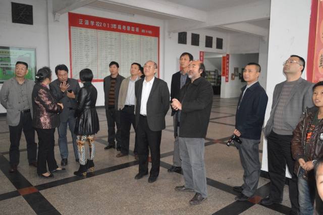 罗校长率毛小波、王伟荣、徐望柱、张红平、黄建新、谷荣亮、曾良古、刘德、廖晴、李丰、郑少君等学校领导迎接考察团一行。罗校长引领考察团一行参观了我校。在前往学校大厅的途中罗校长介绍了风景山以及我校的学生人数。在学校大厅,罗校长在正源学校2013年高考录取榜前介绍了我校今年高考的辉煌成绩;罗校长与考察团一行共同观看了《金蛇狂舞闹新春》,罗校长介绍了节目包含了舞蹈、武术、龙队、狮队等因素,以及我校对学生综合素质的重视和取得的成绩;在《正源的老师们,你们真牛!》的喜报前,罗校长向考察团一行介绍了我校优秀的教师队伍。在交流大厅,领导们兴致勃勃地进行了参观。罗校长向考察团一行介绍了梁晓斌董事长的创业事迹和不求回报、兴办教育的精神。在正源历史图片展前,罗校长特别介绍了学校的教师队伍中共有160多位来自公办学校的老师,其中一部分更是来自耒阳市一中和二中,这些教师为学校做出了很大的贡献。随后,罗校长引领考察团一行参观了我校校园。