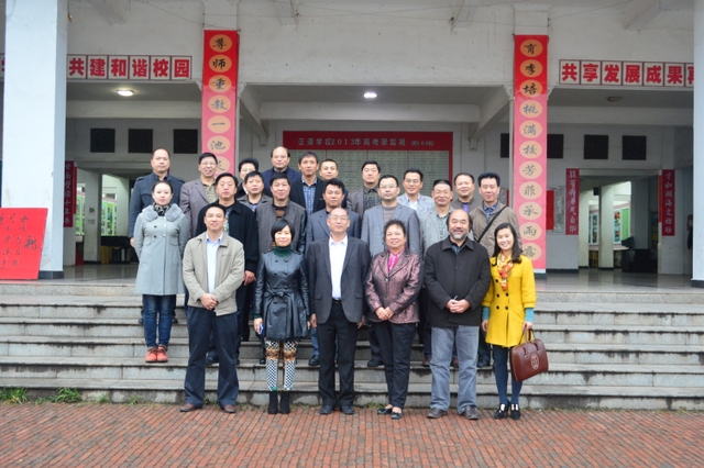 常宁市领导、我市领导和我校部分领导、老师在学校大厅前愉快地合了影。