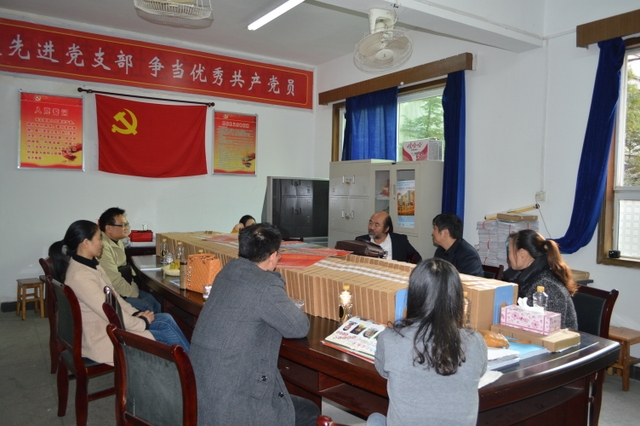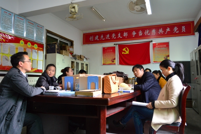 罗校长向客人介绍正源学校办学及管理情况