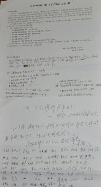高一年级和准高一年级的学生们写上了自己的感想,对这种缺乏良好素质的现象进行了认真的反思。H84班发出了《保护环境,美化校园》的倡议。H85班进行了 “向不文明行为告别”的宣誓活动。中学部其他年级的反思活动正在进行之中。