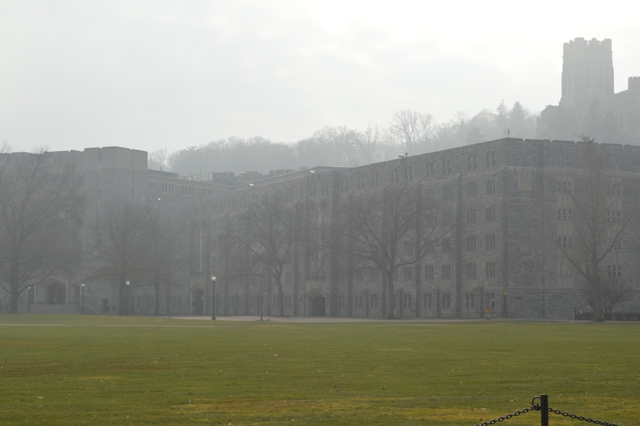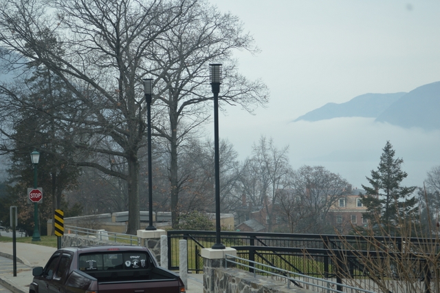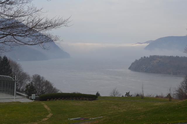 晨雾笼罩,宛若仙境,这里是西点军校的战利品之角(Trophy Point),这里素有“million dollar view (百万美元景观)”的美称。看似湖面,其实是哈德逊河(hudson river)。