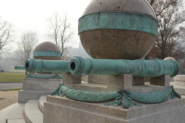 这里的公共艺术品都是从战场上带回来的战利品,这排大炮就是1846年至1848年间的美墨战争的战利品。所以这里才被称为战利品之角(Trophy Point)吧。