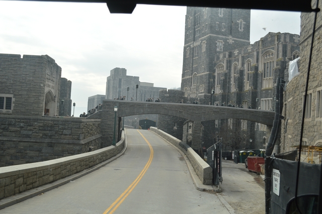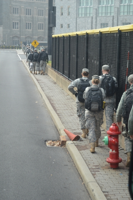 好不容易从车上拍到了军校学员下课后走在校区的镜头。